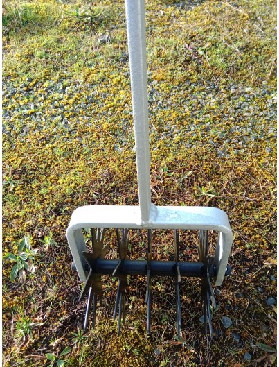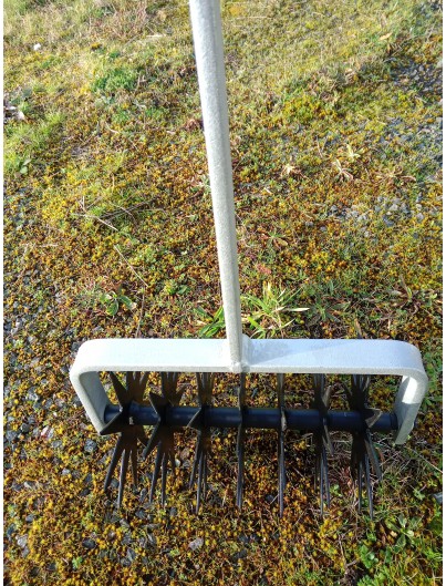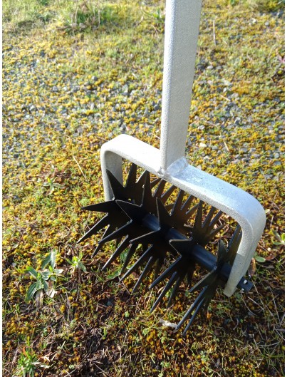 L'émietteur est composé de roues dentées, il est articulé et s'adapte donc au terrain. A noter qu'il est inutile sur du gravier.